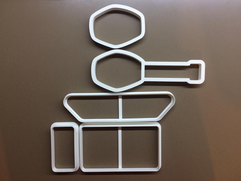 Танк форма для печенья. Дизайн навеян формами T34. Возможно изготовление шкатулки с приклеиваем деталей на карамель а также послойного торта печенья.